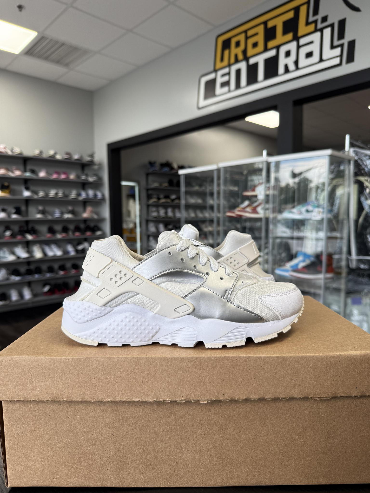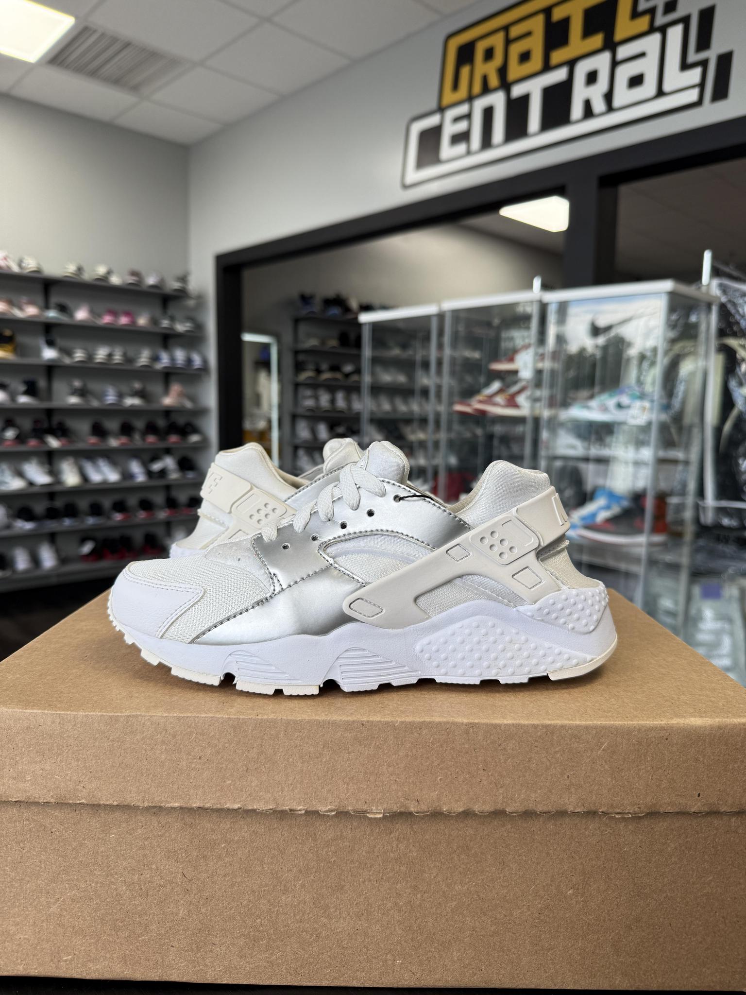 Nike Air Huarache "Silver/White" Used Size 5Y/6.5W